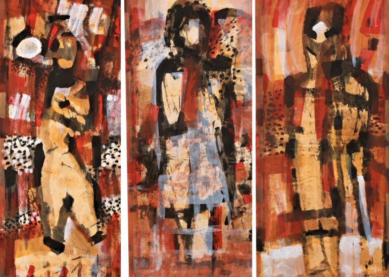 Üç Figür, Tuval üz. mürekkep, 30x30 cm, 2016